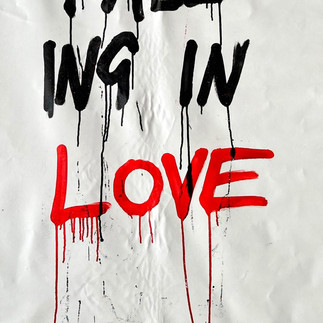 È questo “Falling in Love” per me: una lezione di vita. Una lezione che mi ha insegnato a togliere, eliminare, o meglio, saper custodire determinate cose, per andare avanti. Il baule che troviamo nell’ introduzione del catalogo siamo noi, che ci portiamo appresso sprazzi di vita a volte vissuta, a volte soffocata, a volte desiderata. Siamo noi a decidere come reagire e se imparare da ciò che non dipende da noi. Ed io, questa volta, credo di esserci riuscito, finalmente, ad imparare qualcosa. Opere: - "IHEBISLY", markers acrilici su tela, 123x151 cm (circa)